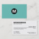 Center Spot Monogram - Black on Turquoise 6bc3bb Business Card
