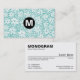 Center Spot Monogram - Flower Design - Lt Aqua Business Card