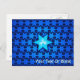 A 3D fractal image with a central, light blue Magen David (Star of David) superimposed on a array of slightly darker Magens David. Add you own text.