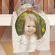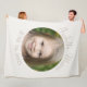 Circular image placement with arched script name and serif date in drift taupe, set against an ivory background. This fleece layout blends soft tones with a centered design that highlights meaningful visuals in a subtle, neutral format.
