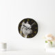 Original fine art painting of a friendly alpaca by artist Carolyn McFann of Two Purring Cats Studio printed on a quality clock for farm animal fans.