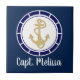 Central Golden Anchor Navy Blue Nautical Ceramic Tile