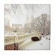 Central Park's Lake is frozen over and under a blanket of snow and the buildings that line Central Park West sit in the distance looking like fairy tale towers and abodes. Taken after a heavy snowfall, this image has a timeless and classic feel which is accentuated by the subtle vintage tones.