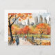 Central Park, watercolors, AI-generated, Postcard
