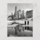 A winter scene of the The Pond in Central Park, with the Plaza Hotel in the distance. New York, 1933.