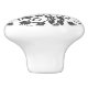 This ceramic cabinet knob is shown in a lovely black and white vine leaf print.