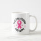 This ceramic coffee mug is shown with a breast cancer awareness print.