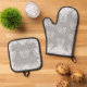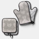 Ceramic lace grey & snowflake oven mitt & pot holder set