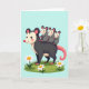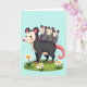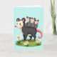 Designed with a tender family scene in mind, this illustration features a larger charcoal-gray marsupial with a creamy face and a rosy nose, looking forward with a gentle, caring expression ❤️. Three smaller youngsters sit in a neat line along its back, each with soft pink cheeks and tiny smiles that echo the parent’s calm, protective mood. Their bright pink ears and curved, bare tails add lively accents against a wide, pale blue-green sky that feels open and airy. The ground is a rich green meadow, where daisy-like flowers suggest a sweet, shared stroll and a quiet closeness between the little ones and their guardian. Light falls evenly across the figures, giving them a smooth, polished look and making their dark eyes shine as they lean comfortably into the ride. A short message appears near the top in a simple, dark font, standing out clearly against the light background 🌼. The daisies are scattered across the grass with white petals and golden centers, with a few blossoms clustered near the lower edge.