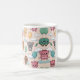 Ceramic mug with a cute pattern of cartoon animals holding colorful balloons, floating among clouds. The design is playful and whimsical.