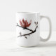 Classic ceramic mug with a Japanese style, semi-e, single blossom on a branch, created by the artist Alan Skyrme.