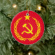 This is the russian flag of the Soviet Union USSR (CCCP) arbored during the Cold War by the Communists and printed on ceramic ornaments.