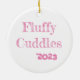 Fluffy Cuddles design printed on a ceramic ornament. Design created in 2023.