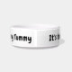 This is a heavy, durable bowl decorated with Tibbies of many colors, the perfect size for hungry/thirsty Tibs. The design is interesting and printing clear.
