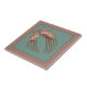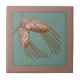 This is a ceramic pine-cone tile with metallic copper. The background is green with a peach frame. Use this on your kitchen backsplash, bathroom or fireplace. If you like nature and care about the environment, this is for you. This is based on an actual ceramic tile made by Oregon tile maker, Fay Jones Day.