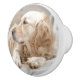 White ceramic pull or door knob with a photographic portrait of a beautiful female Golden Retriever on the front.