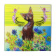 Ceramic Tile Floral Black Cat Kitten Fairy