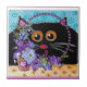 Ceramic Tile Floral Whimsical Cat