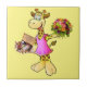 Ceramic Tile Giraffe, Floral, Chocolate, Yellow
