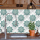 This Tile features an intricately detailed medallion in shades of green and teal. Just the thing for your bathroom remodel or your new kitchen backsplash, This design derives from the tile maker Fay Jones Day. It was inspired by the medallion on her favorite rug.