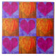 Gorgeous ceramic tile with a mosaic of colorful hearts that can be used for the kitchen, bathroom or as a keepsake tile.