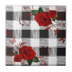Ceramic Tile White and Black Plaid Red Rose