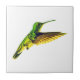 Ceramic tile with a hummingbird (Plain-bellied Emerald) design from a photography by Alan Skyrme.
