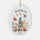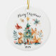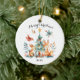 "Celebrate babies' first Christmas with this charming Christmas decoration! The lovingly designed design shows a group of cute woodlands, including a deer, a fox, a hare, a squirrel and a bird that gather around a festively decorated Christmas tree. The tree is decorated with red loops and stars, while small gifts and oak decorate the floor. Above the scene is in playful writing 'Merry Christmas', including the year 2024 in plain writing. The picture is framed by delicate green branches and sparkling golden stars to create a cozy and festive atmosphere. This personalized Christmas decoration is the perfect souvenir for your child's first Christmas and a beautiful eye-catcher for your Christmas tree."