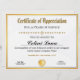 Celebrate employee milestones with our Certificate of Appreciation, designed for work anniversary and years of service recognition. This professional design features a gold frame and customizable text fields to create a personalized diploma for your best employee. Perfect for corporate events, retirement parties, or annual award ceremonies, this certificate allows you to add names, dates, and company logos. Pair it with matching award plaques or thank-you cards for a cohesive recognition package.