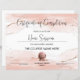 Elegant modern blush pink and gold marble certificate for your makeup course