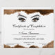 Certificate of Completion Makeup artist Wink Eye Beauty Salon Lash Extension Course Completion