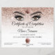 Certificate of Completion Award lashes Course
