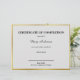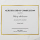 All of the text can be edited on this certificate of completion. A line is near the bottom for the signatory's name. The faux gold border is not made of foil.