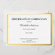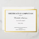 All of the text can be edited on this certificate of completion. A line is near the bottom for the signatory's name. The certificate has a gold foil border.