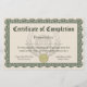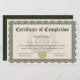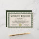 Certificate of completion for any course, school or program. Custom design in elegant green and tan with a faux gold seal. Show your pride and enthusiasm about the efforts of your students and staff with this customizable, personalized certificate. Add your own text online, and order certificates custom made for your ceremony. Pretty rosette vintage woodcut art border with classic style.