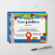 Completion Certificate Award for Pre-school, Pre-K, Kindergarten or any course or program. Add your own title and details to this Customizable Kids school award participation certificate Letter size 8.5"x11". Custom design with stacks of books, bunting banner flags and red ribbon seal. Great to use for preschool, pre-k, kindergarten, elementary primary school! Show your pride and enthusiasm about the efforts of your students and staff with this customizable, personalized certificate. Add your own text online, and order certificates custom made for your summer camp, extra-curricular activity, math, stem, steam, science, robotics, engineering, or elective program. Leave the signature area blank to add a signature later, or type your name and title, and still add your signature above. Honoree's name can be typed in or the blank line can be left to add hand-written or printed names later.