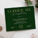 Emerald Green and Gold Effect Completion Certificate Award with your custom logo, perfect for certificate of completion for any type of course completion! You can also use this corporate green and faux gold foil diploma design for any type of accreditation. You can edit all text *except the word certificate*, add your logo and make professional awards for your business or organization.
