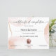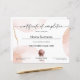 Modern feminine Certificate of Completion with abstract watercolor shapes. Perfect for your lashes, makeup or hairdresser course, diploma, award, participation certificate, or any beauty related business