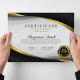 Honor achievement in style with this Elegant Black & Gold Certificate of Excellence Template, designed to deliver a bold, modern, and distinguished presentation. Featuring flowing black and gold wave accents, a refined neutral background, graceful script typography for the recipient’s name, and a classic gold award seal, this certificate instantly communicates prestige and accomplishment. The balanced layout keeps the recipient’s name as the focal point while providing clearly defined sections for award details, date, and signature. Its sleek and professional design makes it ideal for corporate recognition, employee awards, academic excellence, leadership honors, training completions, ministry acknowledgments, volunteer appreciation, and special milestones.