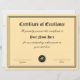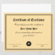 Certificate of excellence achievement award template with seal. Elegant design with custom text and personalized name. Beige or custom color background. Official looking certificate for outstanding achievement in sports, corporate sales and more. Can also be used for official diploma, warranty or record. Reward excellent workers, elite students, best employees, coworkers etc.