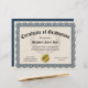Certificate of Graduation, Letter size 8.5"x11" Certificate of Graduation to award kindergarten, fifth 5th grade, eighth 8th grade, or senior 12th grade for completion of school and course requirements. Special award for students for any course, school or program. Custom design in elegant blue and tan with a faux gold seal. Show your appreciation for the the efforts of your students with this customizable, personalized award certificate. Elegant rosette vintage woodcut artistic border with traditional classic style. Add your own text online, and easily order certificates custom made for your special event, grad party or ceremony. Leave the signature area blank to add a signature later, or type your name and title, and still add your signature above. Honoree's name can be typed in or the blank line can be left to add hand-written or printed names later.