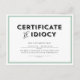 If you've done something wrong and need to apologize do it with an official Certificate of Idiocy postcard. Room to personalize on the front with your name and signature and plenty of space on the back for a more lengthy apology. Available in other formats and colors.