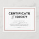 If you've done something you shouldn't have apologize with this fun Certificate of Idiocy postcard. Space on the front to personalize with your name and signature and room on reverse for a more length apology. Black, white and pink.
