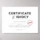 Certificate of Idiocy Poster