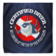 The bandana itself is very durable. It stands washing cycles very well. Also the bandana is quite warm when worn around the neck. Overall I'm quite satisfied with the material and the quality of the product. The design is excellent quality. Printed exactly as it is shown online with crisp lines and great detail. I was a little surprised when the bandana colors came out slightly darker than what was shown but taking into account the dye sublimation printing process and type of material I'm not disappointed. I'm very satisfied with the printed results.