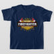 Very bold Certified Firefighter design with crossed fire axes and orange star burst background! Large FIREFIGHTER text in the center with red stripes and and crossed firefighter axes! Certified text above and Bravest of the Brave lower text! Perfect gifts for firefighters! Excellent for firefighter fundraisers!