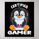Certified Gamer penguin. Funny gaming animal headset desing for boys who love playing video games and console games. Funny Penguin with gaming headphones and gaming controller is playing video games.