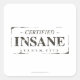 Certified Insane Stamp Square Sticker