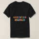 My 11 yo wore adult XL (5’7” 165#). The 8yo is small framed. She wore adult small and tied it in the back. Grandma wore adult large with long sleeve shirt underneath. Tall girl adult medium. Dark haired male adult large. Good quality dark Heather gray, Gildan brand shirt. -it was next up from basic choice and cost about $20 per shirt. Not too thick or thin. Washed and dried well, no major shrinkage. Not see-through. Can wear a bra under it fine. Screen print is just as shown and well done, front and back.