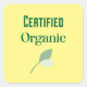 Certified Organic with Leaf Symbol Square Sticker